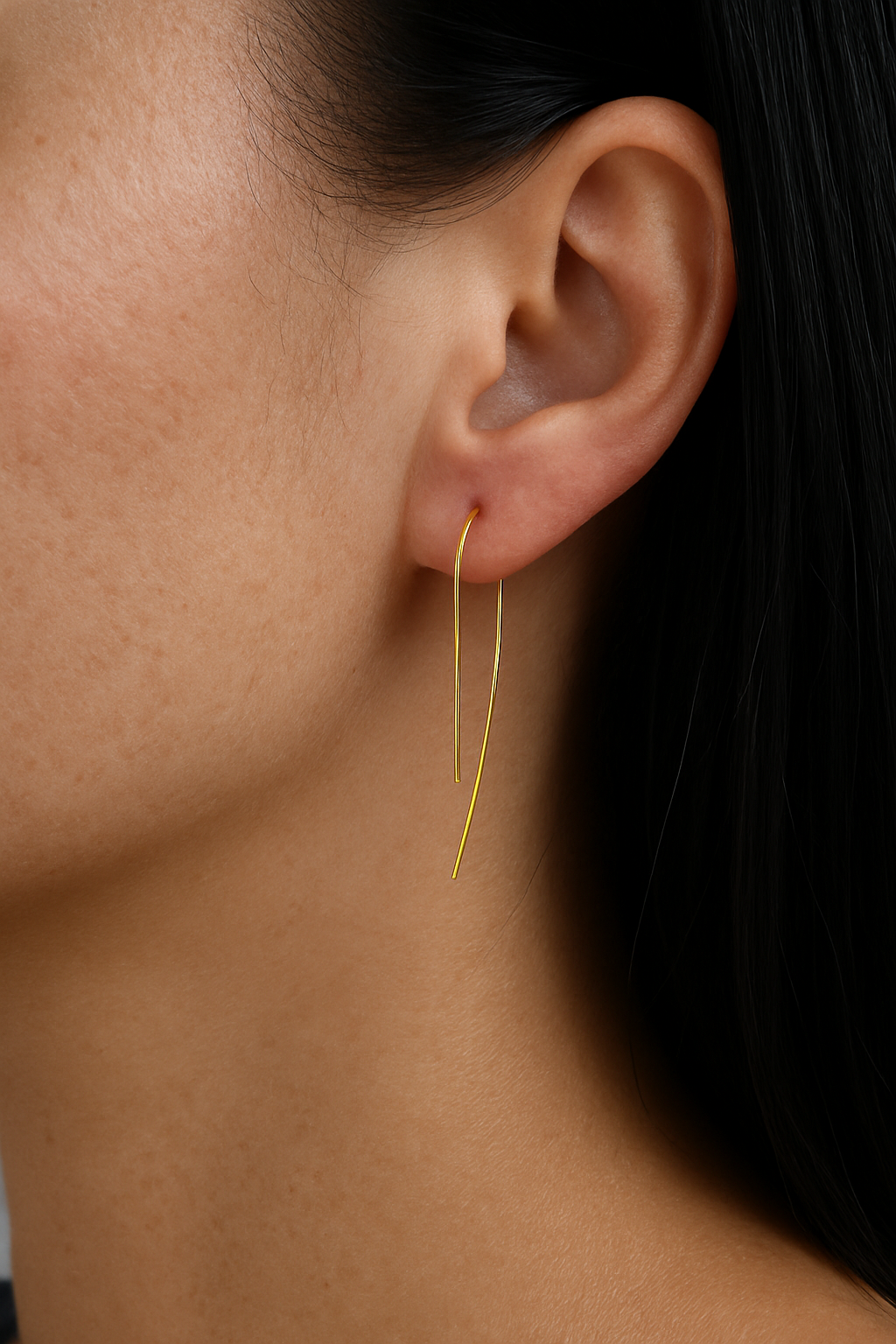 Aretes tipo threader elaborados en acero inoxidable de alta calidad con acabado dorado. Diseño delgado, elegante y atemporal, son sofisticados y versátiles y puedes llevarlos tanto en el día a día como en ocasiones especiales.